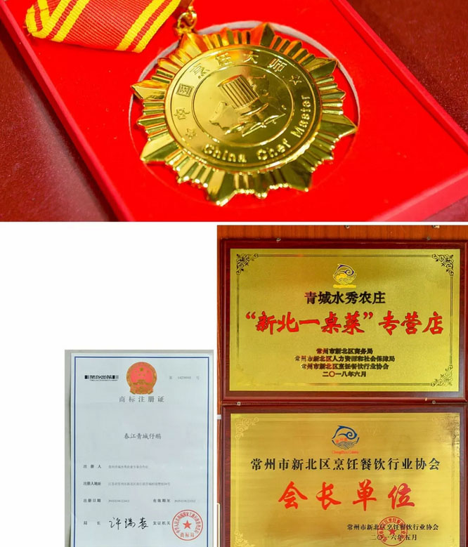 常州青城水秀農(nóng)業(yè)專業(yè)合作社成立于2013年11月21日,注冊資金200萬。位于常泰高速孟河收費(fèi)站旁,離338省道l公里之遠(yuǎn),交通十分便捷。 本合作社共占地面積120多畝,其中生態(tài)漁業(yè)垂釣水面50畝,綠色生態(tài)禽類養(yǎng)殖區(qū)10畝;林木花卉苗木基地區(qū)面積達(dá)到50畝。融合生態(tài)農(nóng)業(yè)、都市農(nóng)業(yè)、莊園農(nóng)業(yè)、園林園藝于一體,著力建設(shè)觀光休閑的新型城郊都市農(nóng)業(yè)示范基地,F(xiàn)有常年在職員10人。營業(yè)至今5年,現(xiàn)有大小包廂12個,農(nóng)莊接待能力為25桌。本農(nóng)莊主營特色家常菜有“青城仔鵝”、“長江鰻魚”、“紅燒青魚尾巴”,“鵝湯煲豆腐”,還有農(nóng)家傳統(tǒng)自制的特色小吃“農(nóng)家八寶飯”、“燜鵝蛋”。本農(nóng)莊的服務(wù)理念足:以綠化、生態(tài)、環(huán)保餐飲為目標(biāo),傳統(tǒng)與現(xiàn)代相結(jié)合的烹飪模式。 “青城仔鵝”,青城仔鵝是魏孝地方的土特產(chǎn),更是常武地區(qū)的菜肴新秀,為了把品牌發(fā)揚(yáng)光大,2015年本農(nóng)莊特申請青城仔鵝為專利。青城仔鵝雖然歷史不是很長,從上世紀(jì)九十年代初期開始至今也有20多年,成為常武地區(qū)有名的“白烏龜”之鄉(xiāng),由于“白烏龜”是天然綠色食品,活殺現(xiàn)供,田園風(fēng)味,農(nóng)家特色,倍受歡迎,至今名氣遠(yuǎn)揚(yáng)。他獨(dú)特之處在于生態(tài)環(huán)境生長和生態(tài)綠色清飼料為主食喂養(yǎng),生長期不超過60-70天,采用獨(dú)特烹飪工藝,具有農(nóng)家田園特色風(fēng)味。仔鵝肉鮮味美,營養(yǎng)價值極高。俗話說:“天上的鵝肉,地上的驢肉。稱鵝肉為“世界綠色食品之王”。 2018年“青城仔鵝”入選新北區(qū)評選出的“十大特色名菜”之首,法人朱全林還獲得“中國烹飪大師”稱號。幾年中,還參加由區(qū)、鎮(zhèn)舉辦的各項(xiàng)美食文化活動:春江江鮮莢食文化節(jié),新北區(qū)江鮮美食文化旅游節(jié)暨“中洋杯”河豚技能大賽等。