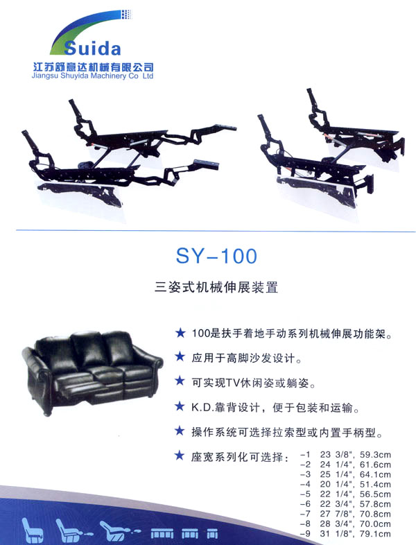 江蘇舒意達(dá)機(jī)械有限公司是一家集研發(fā)設(shè)計(jì),生產(chǎn)制造及銷(xiāo)售的專業(yè)家具五金企業(yè)。公司成立于2006年,座落于風(fēng)景秀麗的江南常州,交通運(yùn)輸?shù)锰飒?dú)厚,為海內(nèi)外客商的來(lái)往交流,洽談和供貨提供了諸多便利,公司占地面積28000平方米,生產(chǎn)廠房面積18000平方米,獨(dú)立的辦公樓,擁有良好的工作環(huán)境。 我們的經(jīng)營(yíng)思理念:堅(jiān)持以人為本,科技為先,用先進(jìn)的設(shè)備,好的工藝流程制造一流的產(chǎn)品。 我們的口號(hào):保證以優(yōu)秀的品質(zhì)服務(wù)于客人,我們的目標(biāo):研發(fā)更多舒適的產(chǎn)品,帶來(lái)生活的享受。 公司誠(chéng)邀海內(nèi)外客商前來(lái)指導(dǎo)洽談,攜手共進(jìn),共造雙贏。