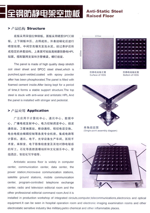 公司廠區(qū)面積30000平方米,擁有全鋼地板生產(chǎn)線兩條,木基、硫酸鈣基地板生產(chǎn)線各一條,年綜合產(chǎn)能100萬平方米。生產(chǎn)蘇杰牌防靜電地板系列和蘇杰牌網(wǎng)絡(luò)地板系列,主要產(chǎn)品有全鋼防靜電架空地板、全鋼OA網(wǎng)絡(luò)地板、瓷磚貼面防靜電地板、硫酸鈣防靜電地板、木基防靜電地板、鋁合金防靜電地板、防靜電通風(fēng)地板等。