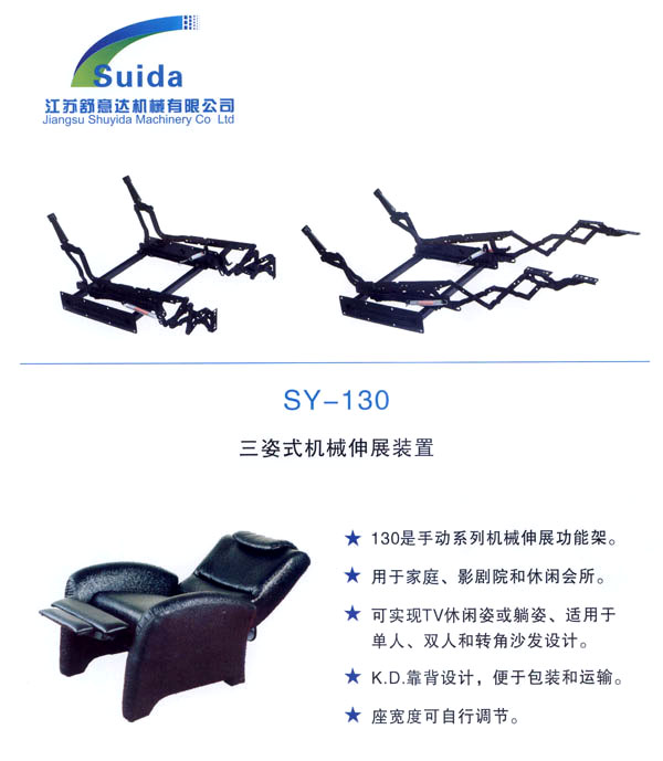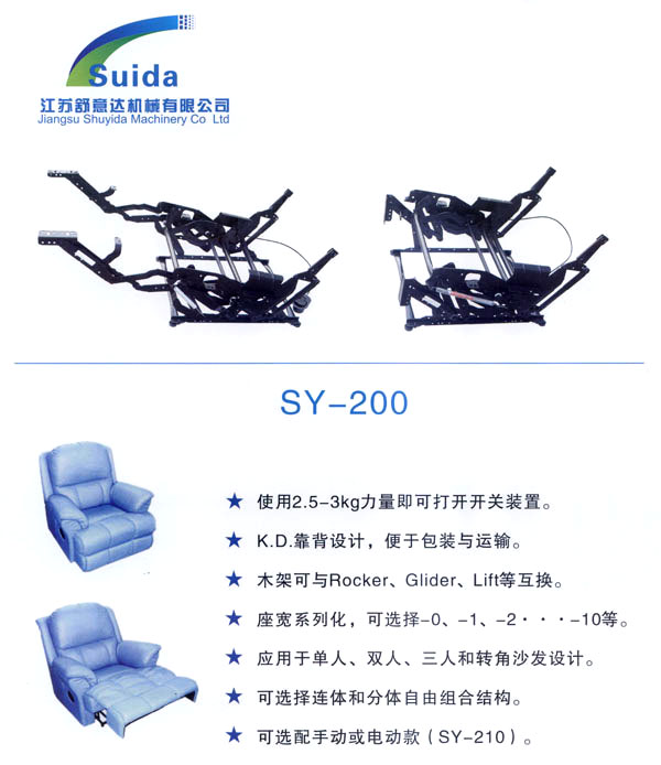 江蘇舒意達(dá)機(jī)械有限公司是一家集研發(fā)設(shè)計(jì),生產(chǎn)制造及銷(xiāo)售的專(zhuān)業(yè)家具五金企業(yè)。公司成立于2006年,座落于風(fēng)景秀麗的江南常州,交通運(yùn)輸?shù)锰飒?dú)厚,為海內(nèi)外客商的來(lái)往交流,洽談和供貨提供了諸多便利,公司占地面積28000平方米,生產(chǎn)廠房面積18000平方米,獨(dú)立的辦公樓,擁有良好的工作環(huán)境。 我們的經(jīng)營(yíng)思理念:堅(jiān)持以人為本,科技為先,用先進(jìn)的設(shè)備,好的工藝流程制造一流的產(chǎn)品。 我們的口號(hào):保證以?xún)?yōu)秀的品質(zhì)服務(wù)于客人,我們的目標(biāo):研發(fā)更多舒適的產(chǎn)品,帶來(lái)生活的享受。 公司誠(chéng)邀海內(nèi)外客商前來(lái)指導(dǎo)洽談,攜手共進(jìn),共造雙贏。