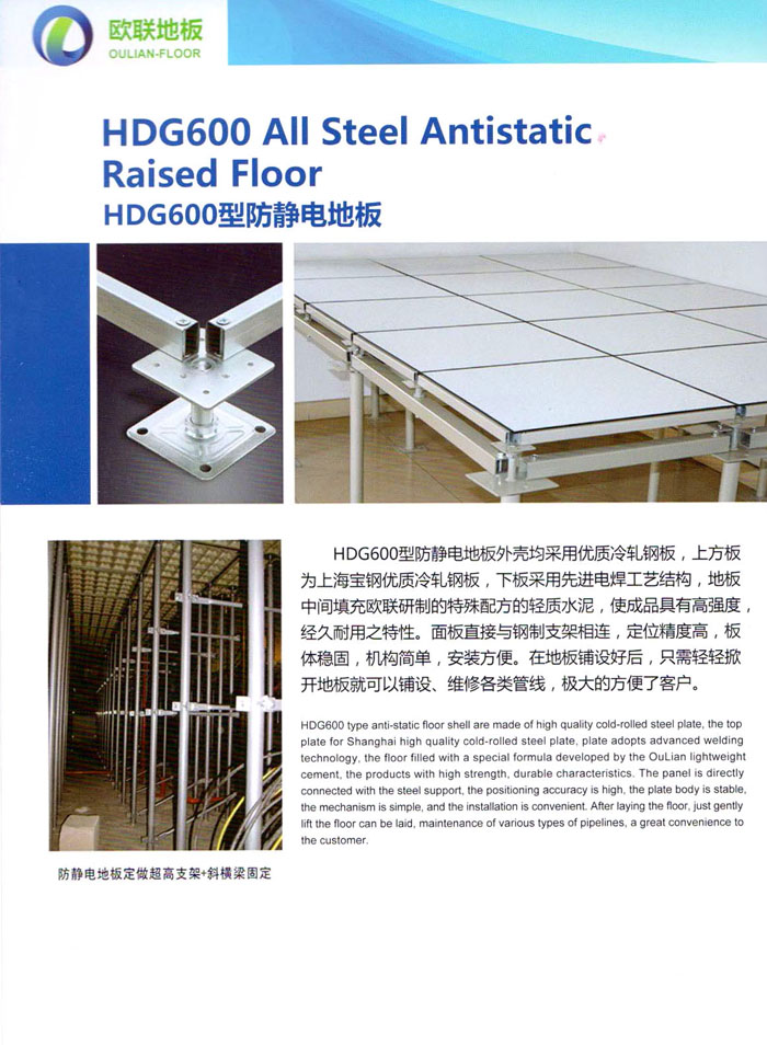防靜電高架活動(dòng)地板、全鋼地板、陶瓷地板是計(jì)算機(jī)行業(yè)發(fā)展起來的新型鋪地材料,隔離了潮氣、靜電灰塵,最重要的是解決了綜合布線問題,無需預(yù)埋管線,可隨時(shí)拆卸、搬移,保證了資訊設(shè)備完整的優(yōu)點(diǎn),適應(yīng)了智能化樓宇中信息自動(dòng)化技術(shù)對(duì)所處環(huán)境的特定要求,避免了廣大客戶的雙重投資,使現(xiàn)代化辦公程度更加高效,辦公場(chǎng)所更加舒適。 “歐聯(lián)”系列全鋼地板,符合國(guó)家安全要求,種類完備多樣,其中防靜電陶瓷地板、硫酸鈣地板等除具有普通瓷質(zhì)的裝飾和實(shí)用性外,其耐磨、防水、防火功能優(yōu)于其它同類產(chǎn)品,防靜電系列地板,能切合不同客戶的要求,其靈活的配置,深受客戶歡迎,不同材質(zhì)的地板結(jié)構(gòu)使設(shè)計(jì)師的設(shè)計(jì)空間比傳統(tǒng)的更加廣闊自由和善變。 公司大力發(fā)展國(guó)內(nèi)外銷售業(yè)務(wù),多次中標(biāo)國(guó)內(nèi)重點(diǎn)工程 ,例:哈爾濱醫(yī)科大學(xué)、山東大學(xué)、上海普通機(jī)場(chǎng)等。 公司將一如既往開發(fā)和制造一流的產(chǎn)品,愿與廣大有識(shí)之士合作發(fā)展,共創(chuàng)美好未來。