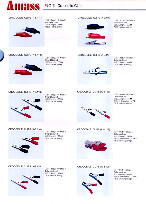本公司專業(yè)生產(chǎn)各類香蕉插頭,香蕉插座,接線柱,電瓶夾,鱷魚夾,測(cè)試導(dǎo)線,測(cè)試筆等。產(chǎn)品分2mm/2.5mm/3mm/3.5mm/4mm五大系列,百余種款式, 各種香蕉插廣泛用于儀器、儀表、電力測(cè)試、教學(xué)、玩具,視聽設(shè)備、醫(yī)療儀器,保健產(chǎn)品等領(lǐng)域。公司技術(shù)力量雄厚,生產(chǎn)工藝先進(jìn),產(chǎn)品遠(yuǎn)銷港、臺(tái)、歐美,并與飛利浦等國(guó)際品牌配套。公司本著精益求精的理念,歡迎新老客戶光臨。 我們擁有資深的工程師和豐富的電子產(chǎn)品銷售經(jīng)驗(yàn),專業(yè)生產(chǎn)各類電子接插件產(chǎn)品。 香蕉插頭,香蕉插座,電瓶夾,鱷魚夾等品種齊全、 質(zhì)量可靠,致力服務(wù)于通訊、數(shù)據(jù)通信、消費(fèi)類電子產(chǎn)品、計(jì)算機(jī)和計(jì)算機(jī)外圍設(shè)備以及工業(yè)應(yīng)用等領(lǐng)域,能給客戶提供全面采購解決方案。 我們秉承穩(wěn)健作風(fēng)、誠(chéng)實(shí)經(jīng)營(yíng)、合理價(jià)格、完善服務(wù)的宗旨,在全體客戶的支持下,公司不斷創(chuàng)新進(jìn)取,業(yè)績(jī)蒸蒸日上,已與數(shù)十家電子零件制造商及其分支機(jī)構(gòu)建立密切合作關(guān)系,在國(guó)內(nèi)擁有數(shù)百家固定客戶。