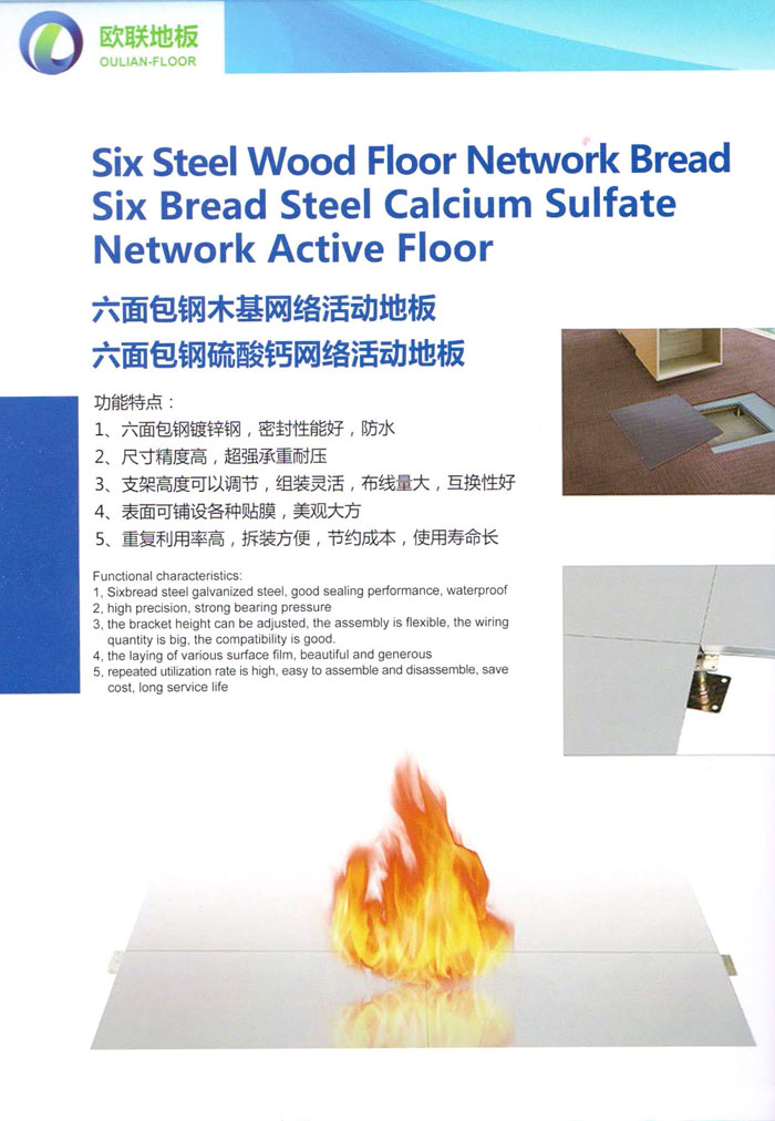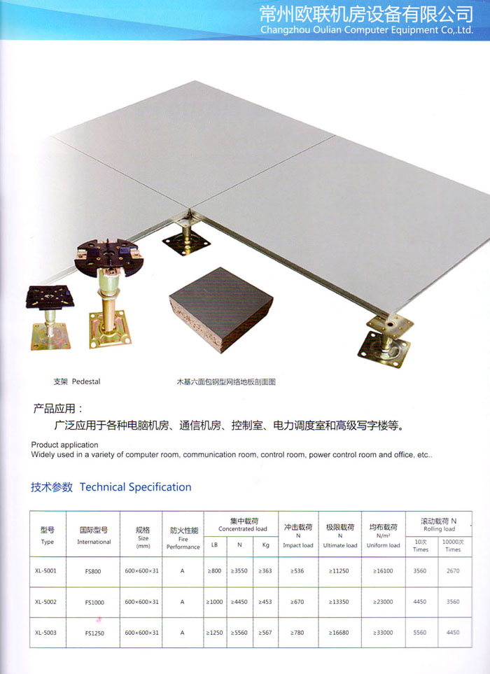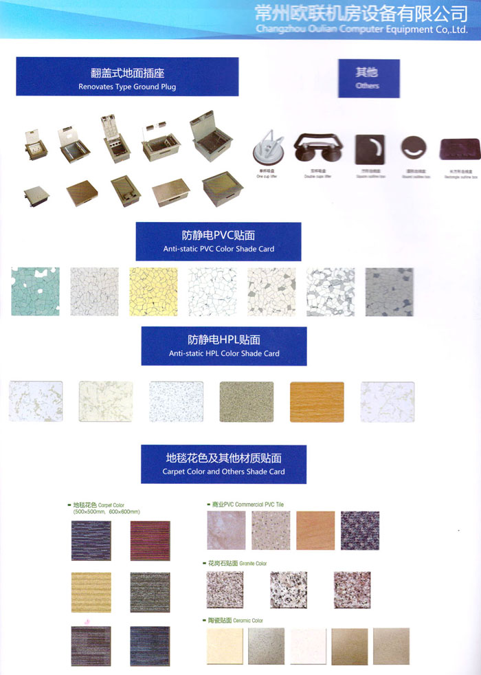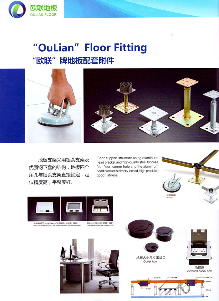 防靜電高架活動地板、全鋼地板、陶瓷地板是計算機行業(yè)發(fā)展起來的新型鋪地材料,隔離了潮氣、靜電灰塵,最重要的是解決了綜合布線問題,無需預(yù)埋管線,可隨時拆卸、搬移,保證了資訊設(shè)備完整的優(yōu)點,適應(yīng)了智能化樓宇中信息自動化技術(shù)對所處環(huán)境的特定要求,避免了廣大客戶的雙重投資,使現(xiàn)代化辦公程度更加高效,辦公場所更加舒適。 “歐聯(lián)”系列全鋼地板,符合國家安全要求,種類完備多樣,其中防靜電陶瓷地板、硫酸鈣地板等除具有普通瓷質(zhì)的裝飾和實用性外,其耐磨、防水、防火功能優(yōu)于其它同類產(chǎn)品,防靜電系列地板,能切合不同客戶的要求,其靈活的配置,深受客戶歡迎,不同材質(zhì)的地板結(jié)構(gòu)使設(shè)計師的設(shè)計空間比傳統(tǒng)的更加廣闊自由和善變。 公司大力發(fā)展國內(nèi)外銷售業(yè)務(wù),多次中標國內(nèi)重點工程 ,例:哈爾濱醫(yī)科大學(xué)、山東大學(xué)、上海普通機場等。 公司將一如既往開發(fā)和制造一流的產(chǎn)品,愿與廣大有識之士合作發(fā)展,共創(chuàng)美好未來。